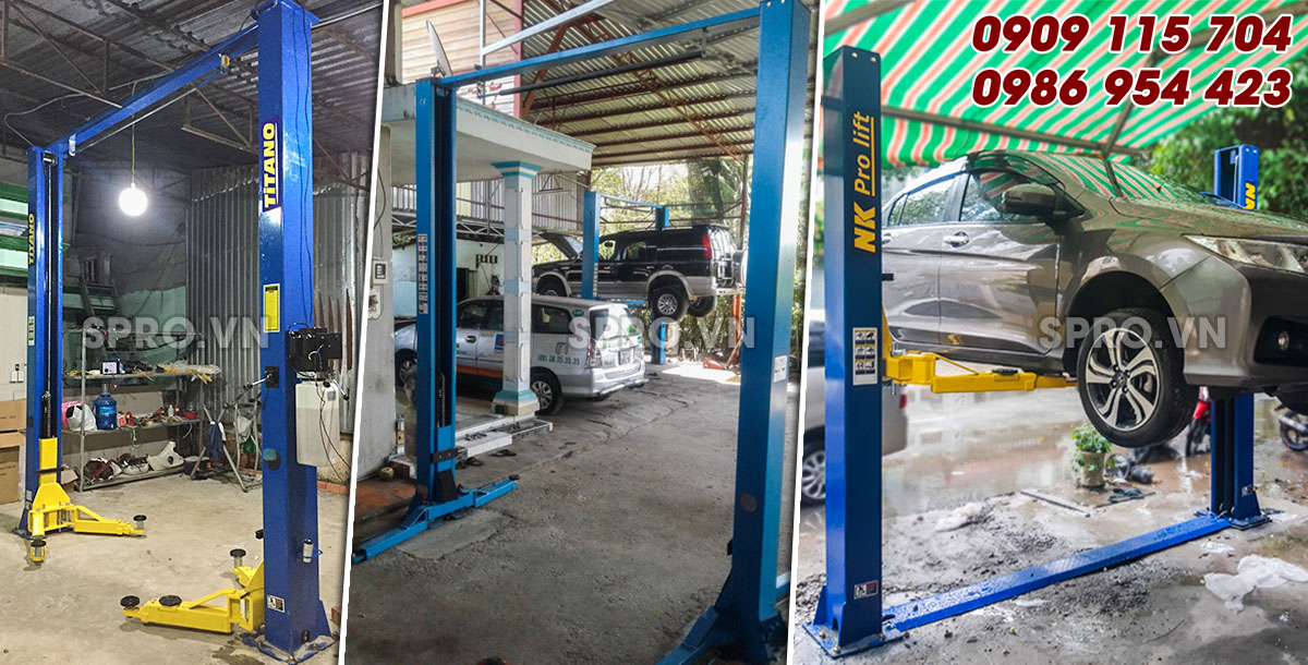 Cầu nâng 2 trụ nâng hạ ô tô thương hiệu nk