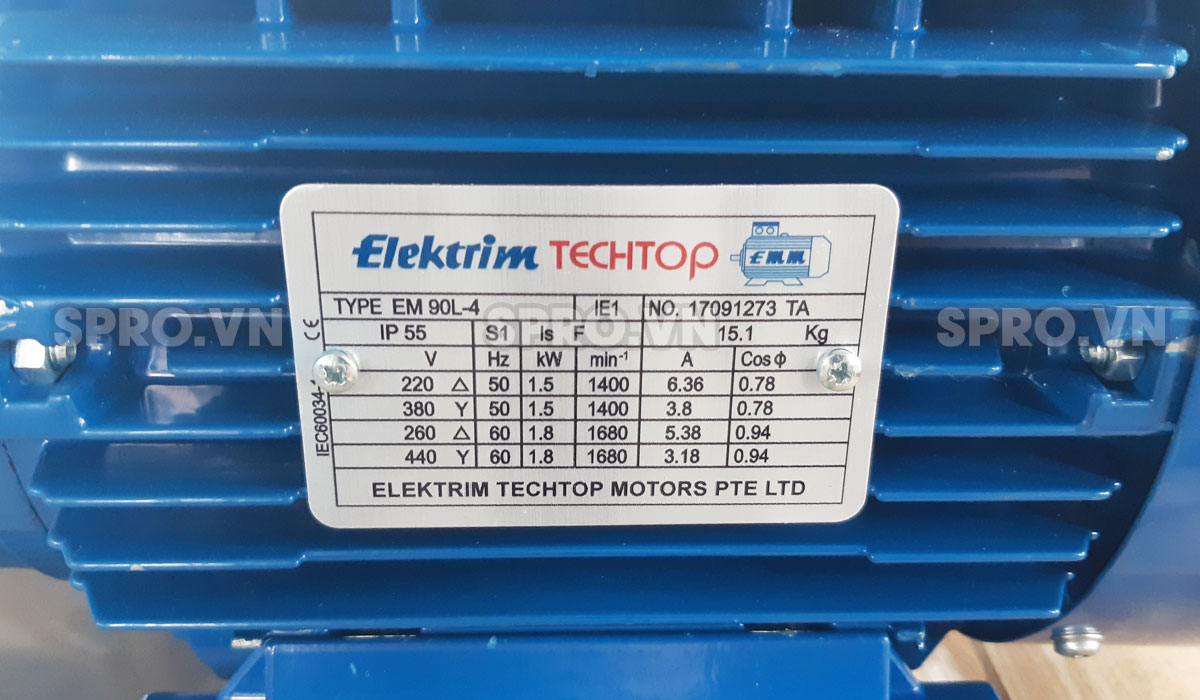 Động cơ điện motor Elektrim EM90L-4 3 pha công suất 2 HP